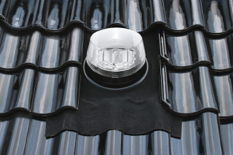 De Solatube Ø 25 cm voor hellend dak is uitgerust met een indekstuk van Ubiflex. Hierdoor is deze doorvoer heel makkelijk en snel te monteren.