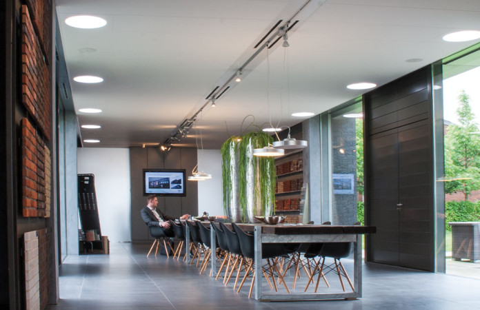 Het bedrijf is koploper in kwalitatief duurzaam bouwen, daarom waren duurzame producten een vereiste in het nieuwe pand. Om de natuurlijke kleuren van de bakstenen goed tot zijn recht te laten komen is veelvuldig gebruik gemaakt van daglicht. De architect Kees Marcelis heeft de showroom uitgerust met vier grote raampartijen. Voor de ramen in het midden van het pand liggen twee vijvers. Het spiegelende water weerkaatst het daglicht naar binnen. Door de reflectie op het plafond geeft dit een mooi effect. Het buitenlicht via de raampartijen was echter niet voldoende om de lange wanden met bakstenen te belichten middels natuurlijk daglicht.