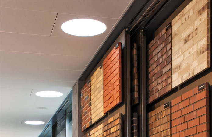 In de werkplaats en de showroom is de Solatube met een diameter van Ø 53 cm toegepast, omdat dit type geheel vrij kan hangen in de open ruimte. Voor de ruimtes met een systeemplafond had de Ø 35 cm de voorkeur. De systeemplaten zijn eenvoudig aan de ronde lichtbronnen aan te passen, die daarmee ook geschikt zijn voor de kantoren en het bedrijfsrestaurant.