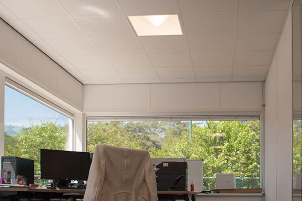 Iedere werkplek is voorzien van daglicht. Ik stond er sceptisch tegenover, maar het kantoorpersoneel ervaart het als prachtig licht wat natuurlijk aanvoelt en prettig werkt. Ik ben blij dat ik deze keuze heb gemaakt. De TechLED schijnt ook perfect automatisch bij.